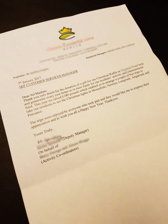 We helped them raise £180 towards there activity and entertainment fund. We trust all goes well for them!