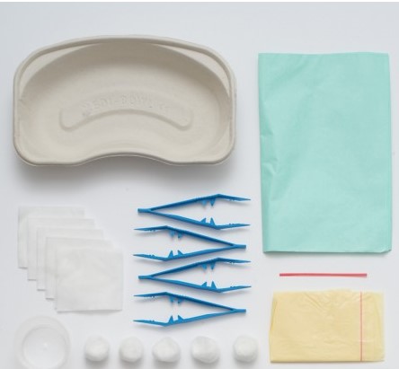 5 x Non Woven Swab 7.5cm x 7.5cm 4ply 5 x Cotton Wool Balls Large 1 x Gallipot 60ml 4 x Forceps Griprite Blue 1 x Yellow Bag 1 x Red Tie for Bag 1 x Pulp Kidney Dish White 1 x Plain Paper Green 60cm x 90cm 1 x Sterile Field