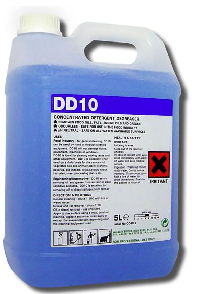 DD10 contains a blend of emulsifiers to remove food oils and fats.