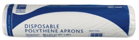 Premier disposable polythene aprons with a halter neck and waist ties are individually wrapped for product protection and ease of insertion into the wall mountable dispenser.