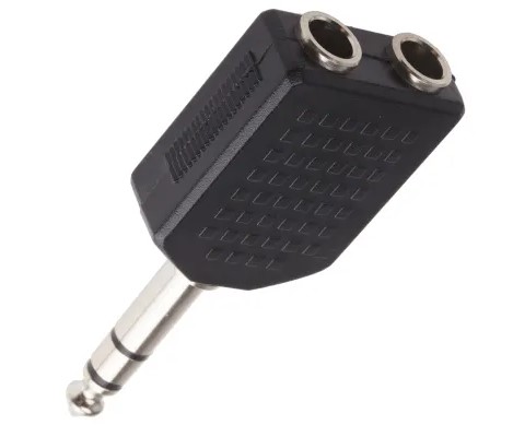 Allows two 0.25in. stereo jack plugs to be connected to one 0.25in. stereo socket