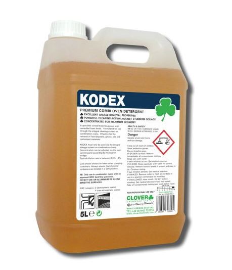 Dosed automatically during the ovens cleaning programme, Kodex has controlled foam levels and is effective for the removal of food deposits, grease, oils and carbonised materials.