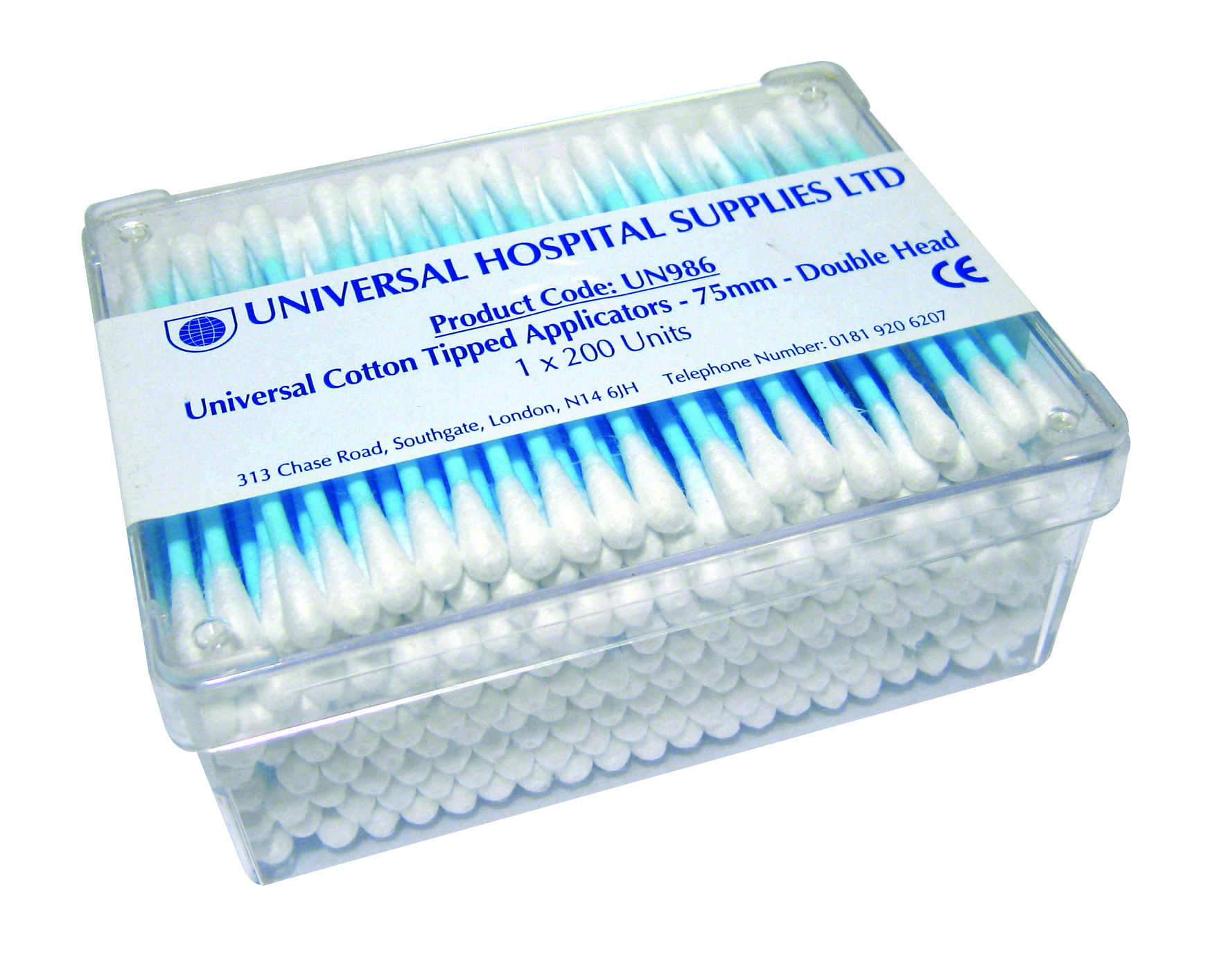 Non Sterile Cotton Bud Tipped Double Ended Applicators 76mm (3")