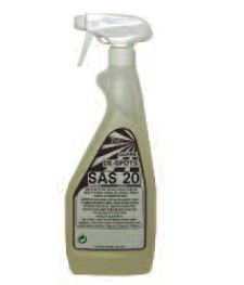 A thin clear liquid crystallises the remaining grease and oil to enable it to be brushed or vacuumed away.