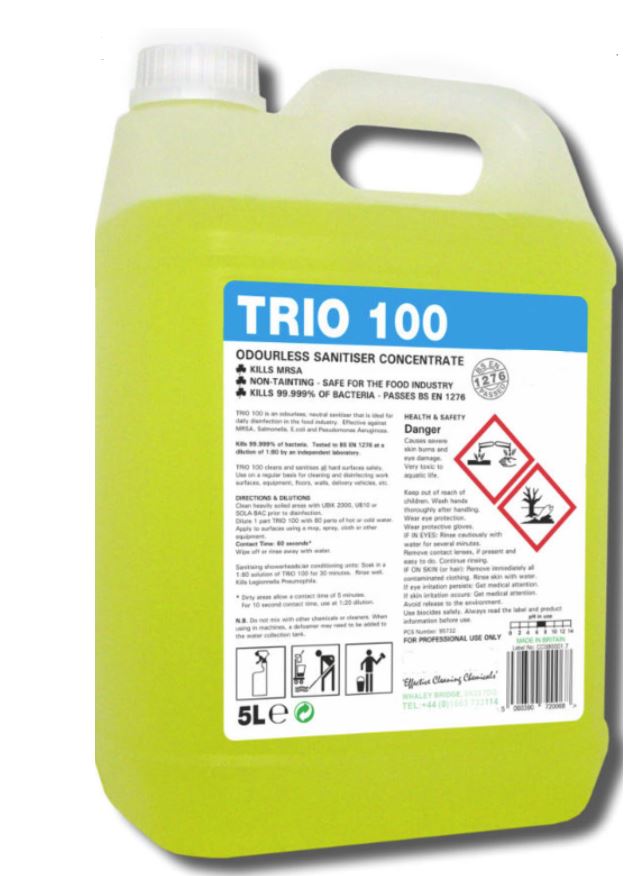TRIO 100 cleans and sanitises all hard surfaces safely.