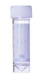 The urine bottle has a 60ml capacity and comes with a printed label for identification and a plastic cap to seal the sample.
